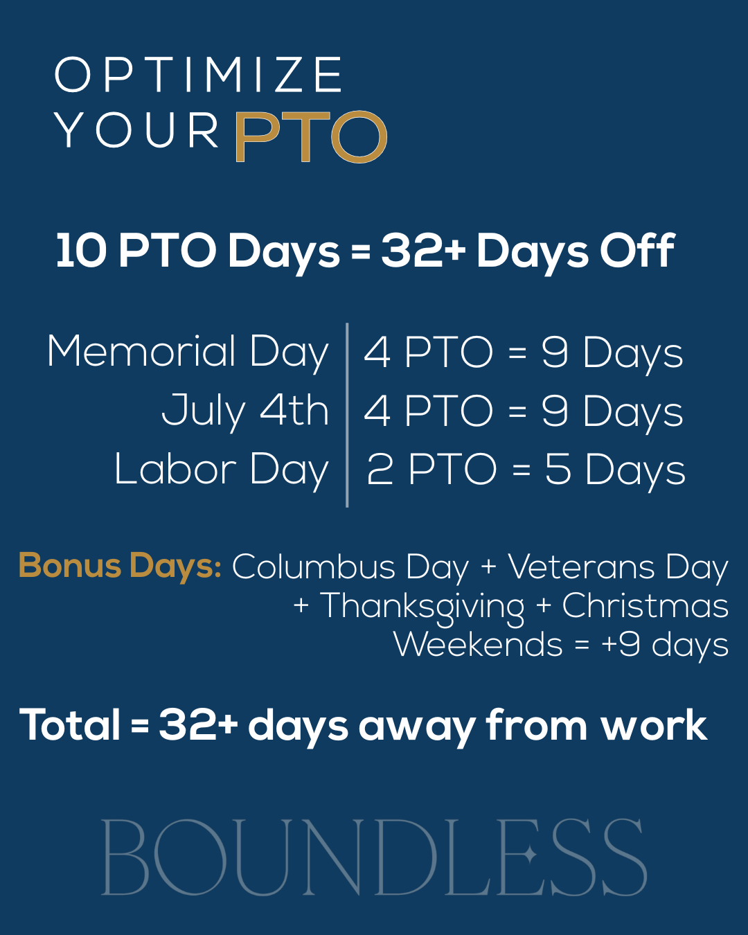How to Maximize PTO in 2026: Turn 10 Vacation Days Into 38+ Days Off - Review the individual strategies
